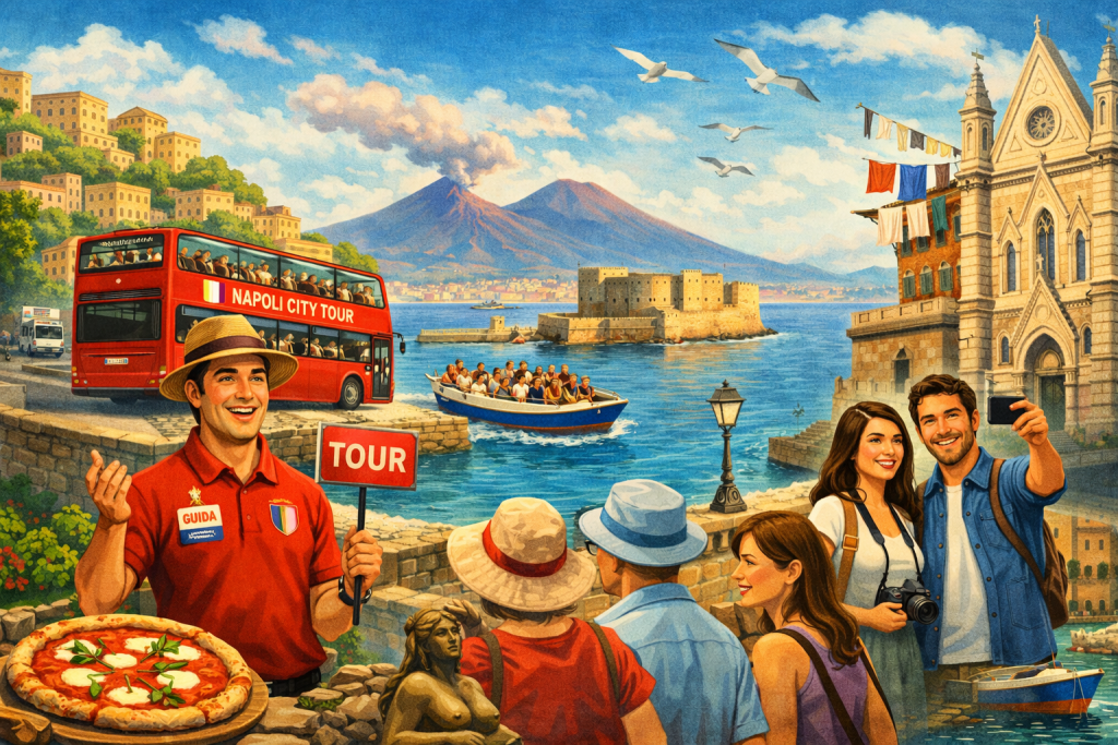 Scopri Napoli in modo semplice e autentico: trasferimenti comodi, tour guidati, esperienze di gruppo e in barca, oltre alla prenotazione di biglietti per le principali attrazioni. Tutto quello che ti serve per vivere al meglio la città, senza pensieri.